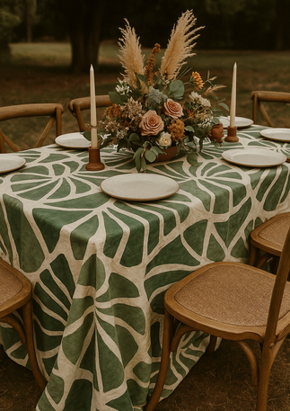 Designed exclusively for your event, each piece is painted by hand to reflect your colors, theme, and unique style. From delicate brushstrokes to bold artistic patterns, these custom textiles transform any setting into a visual experience your guests will never forget.